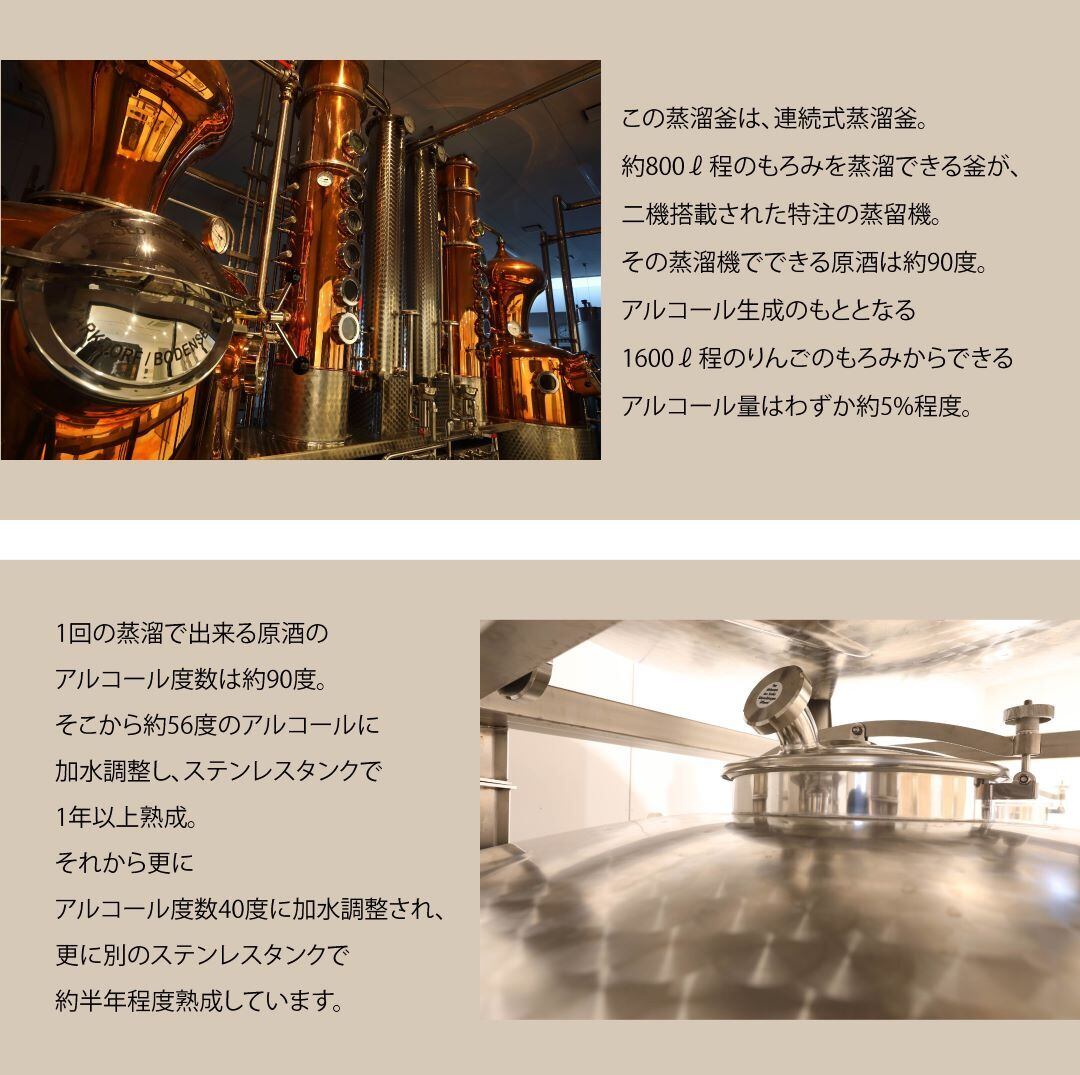 青森の新鮮なりんご、厳選した酵母、清らかな天然水だけで作られた贅沢な一本です。その華やかな香りとフレッシュな味わいは、まるで青森の自然を感じるかのよう。ロックで楽しむもよし、カクテルにして楽しむもよし、お好きなスタイルでお楽しみください。